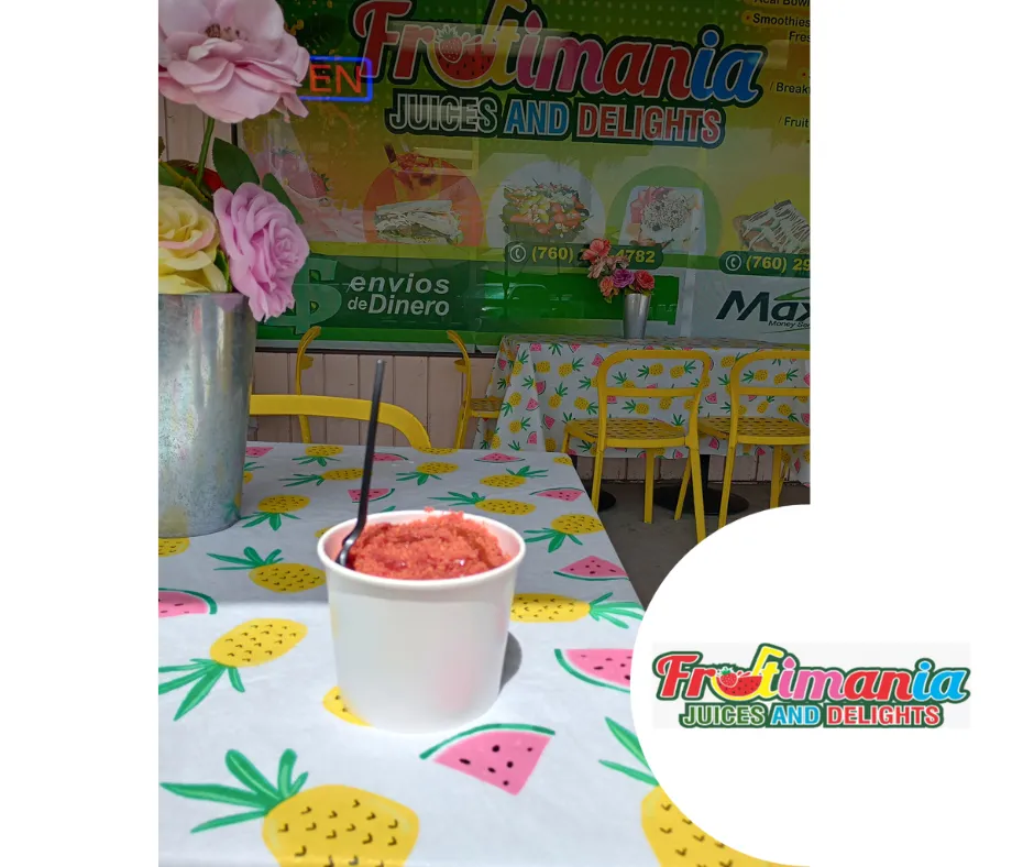 At Frutimania Juices and Delights, we believe fresh is best. Nestled in the heart of Escondido, our juice bar serves up handcrafted juices and delightful snacks made to order. From Mexican-inspired fruit salads to refreshing smoothies and savory crepes, we combine quality ingredients with friendly service to offer a warm, welcoming experience. Our mission is simple — deliver delicious, health-forward food that brings joy to your day.